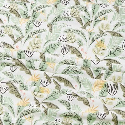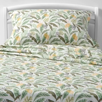 - Leaf-print sheet set includes 1 fitted sheet, 1 flat sheet and matching pillowcase