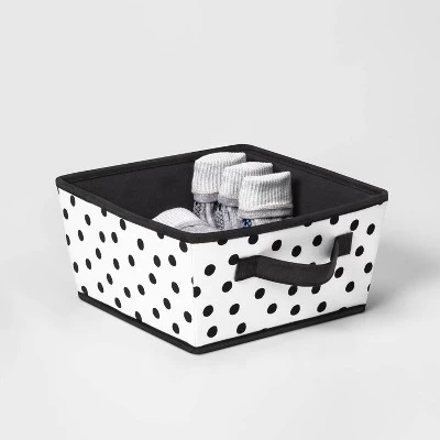 Help your kiddo keep their room clutter free with the Dotted Canvas Bin from Pillowfort™. Designed in a cylindrical silhouette and featuring a deep design, this kids storage bin is great for storing anything from clothes to books or board games, while the open-top design gives them easy access to its contents. Plus, the two side handles make it easy to carry from one place to the other. Adorned with black dots on a white background, it will look great placed in any corner of their room.