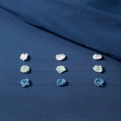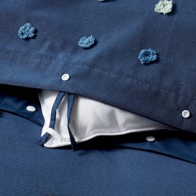Instantly liven up the ambiance of your child’s room with this Pompom Duvet Cover from Pillowfort™. Made from a soft fabric blend that offers comfortable year-round use, this printed duvet cover features hidden button snaps and side ties to help keep the duvet insert in place. Designed in a solid hue, this cozy duvet cover features a tufted construction with stitched pompom accents forming horizontal stripes to add a touch of fun style to their bedroom decor. Coordinate with a matching pillow sham and sheets of your choice to complete their bedding ensemble.
